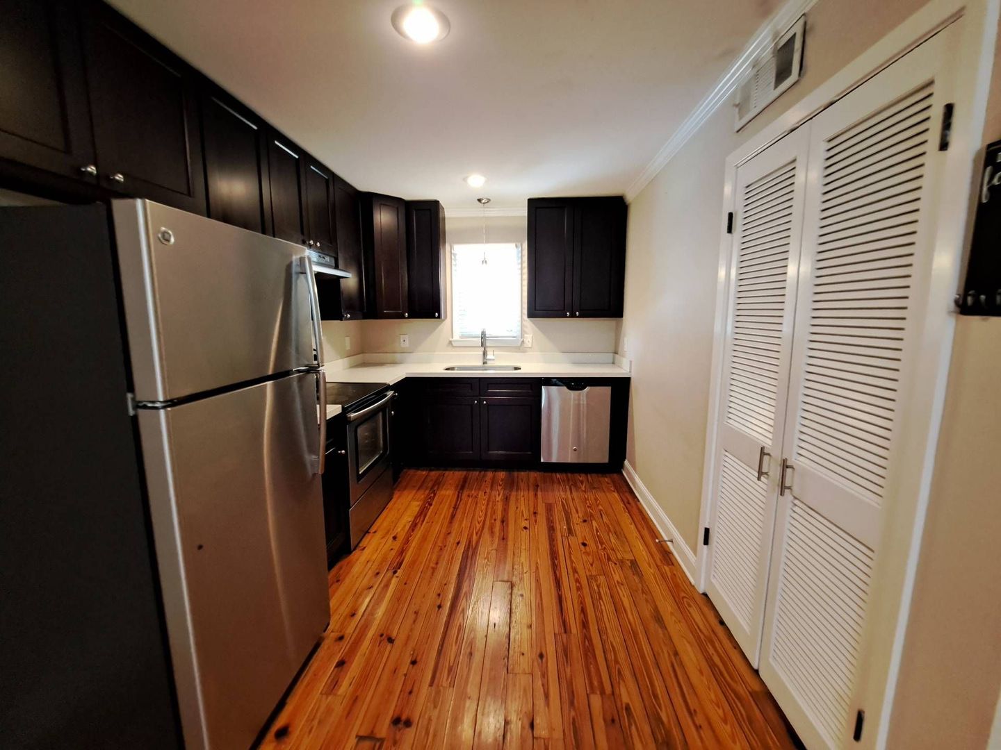 This renovated apartment is a must see in a great location. Walk to City Park and Delgado College and the Streetcar is easily accessible. This 2 bedroom is located in a 3 building complex with only 4 units in each building (2 up and 2 down). Spacious kitchen that has been completely remodeled with 42” Espresso Shaker style cabinetry, quartz countertops, and top line stainless steel appliances. The bathroom was tastefully redone with glass-enclosed tiled walk-in showers and all new fixtures. Apartment has lots of light. Kitchen includes refrigerator, ceramic top stove, and dishwasher. Laundry facilities on site. Central air and heat. Ceiling fans. Hardwood and tile floors. Off street parking. Pool and grassy outdoor space.